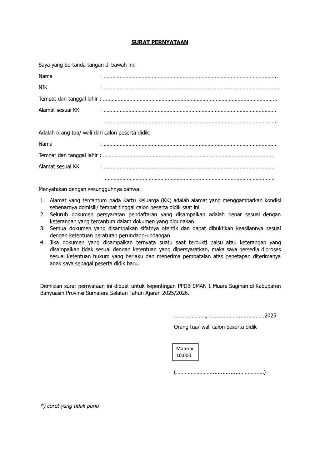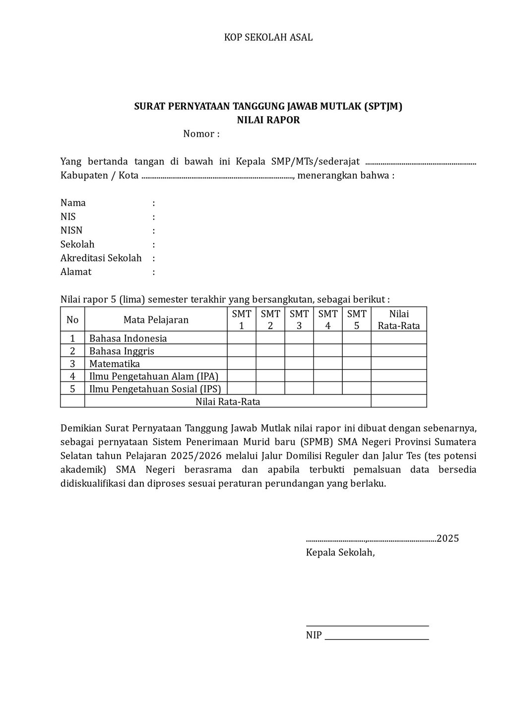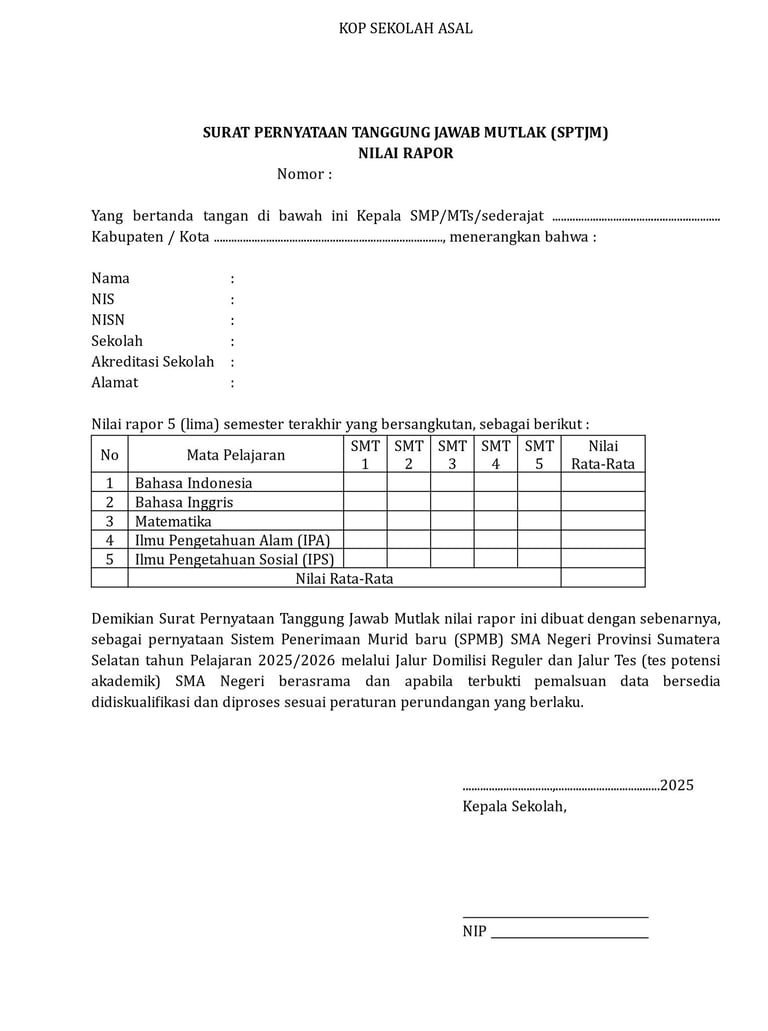 Surat Tanggung Jawab Mutlak (SPTJM)